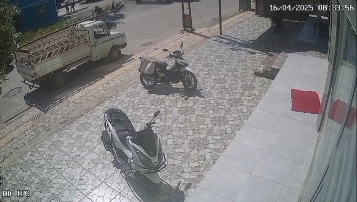 Öte yandan kaza anı, çevredeki bir iş yerinin güvenlik kamerasına yansıdı.
