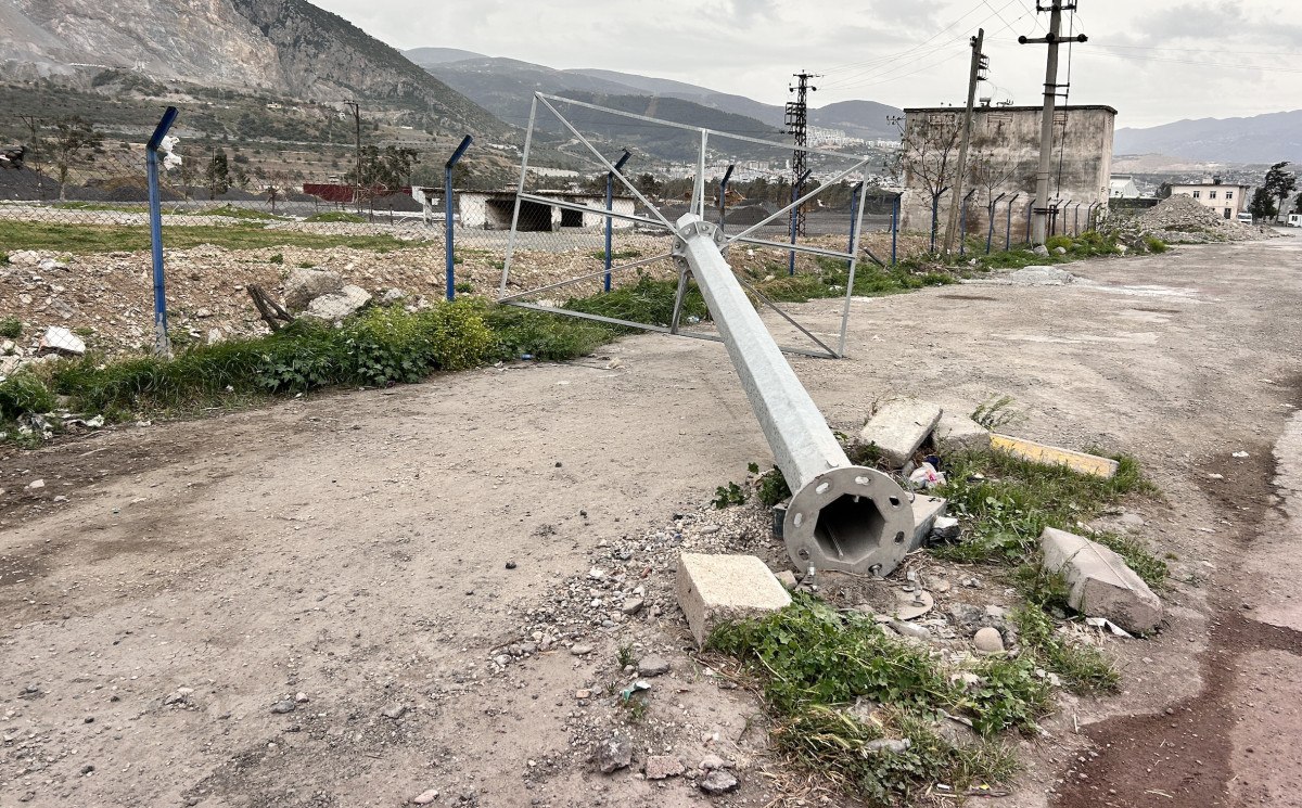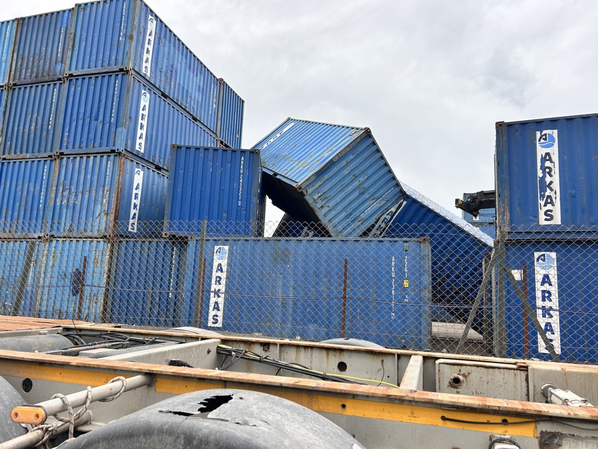 Şiddetli fırtına nedeniyle kent genelinde İskenderun liman konteynerleri sürüklendi, trafik lambası yerinden söküldü, bir evin çatısı uçtu, demir kapı ve direk devrildi.