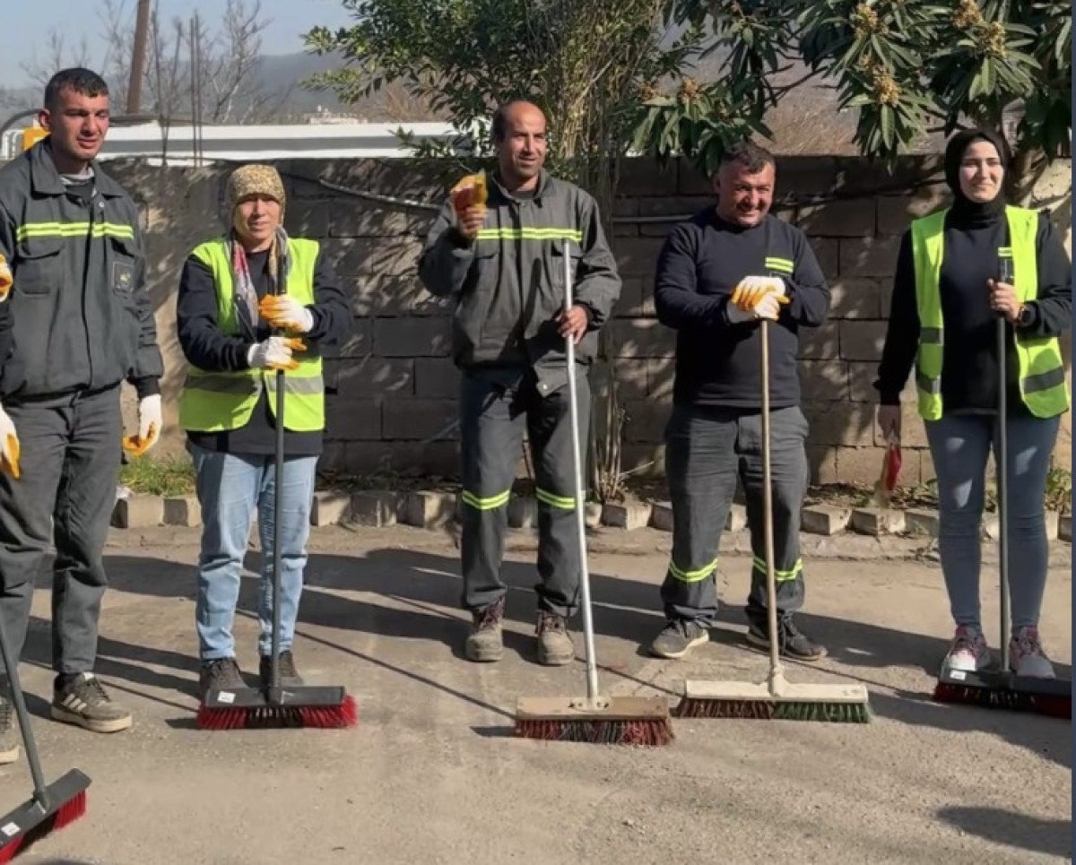 O anları sosyal medya hesaplarından paylaşan işçiler, ellerine süpürgelerini alarak dans etti.