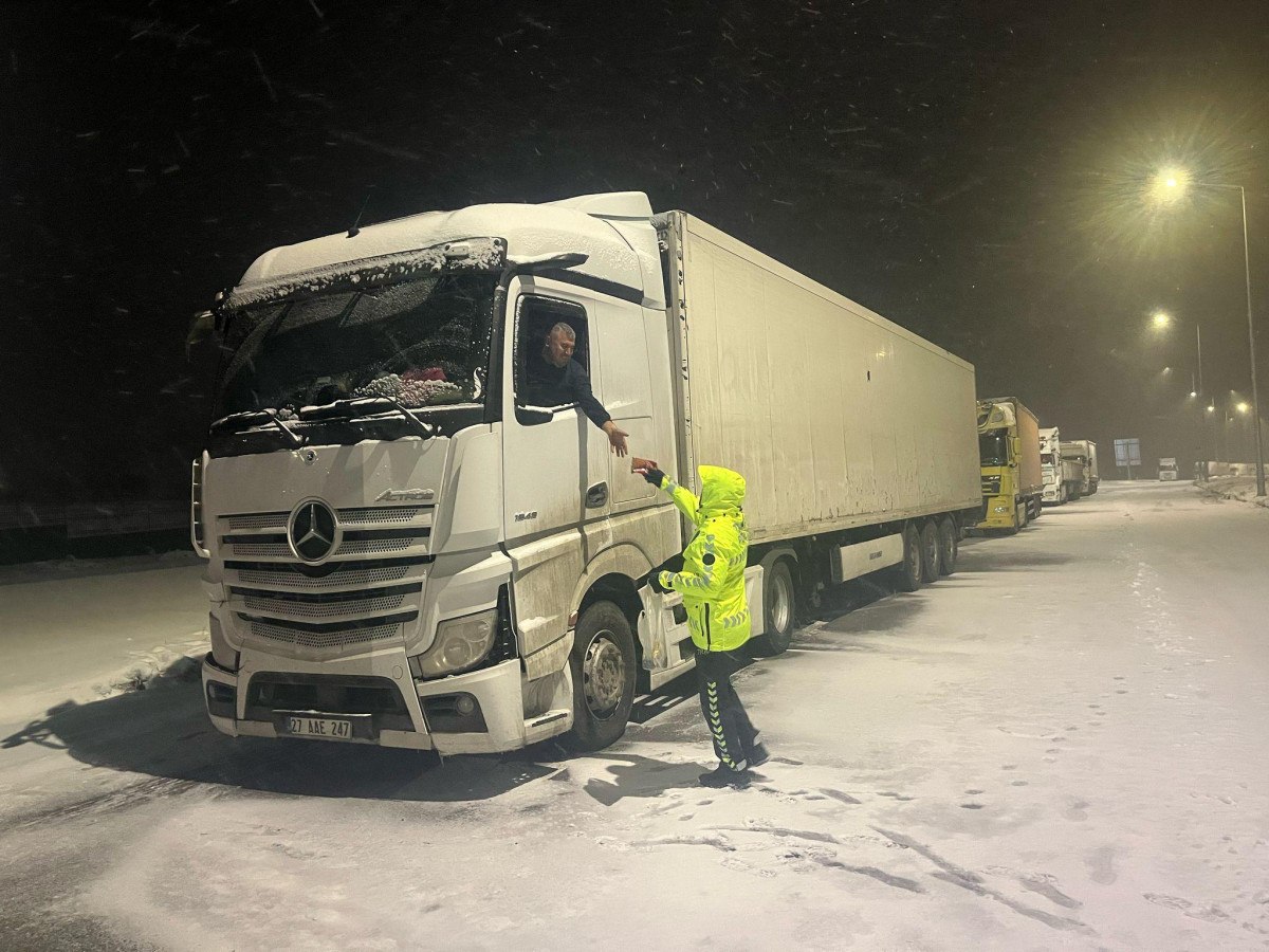Polis ekipleri, yolda kalan sürücülere ve yanlarındakilerine yiyecek ikramında da bulundu.