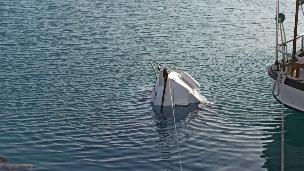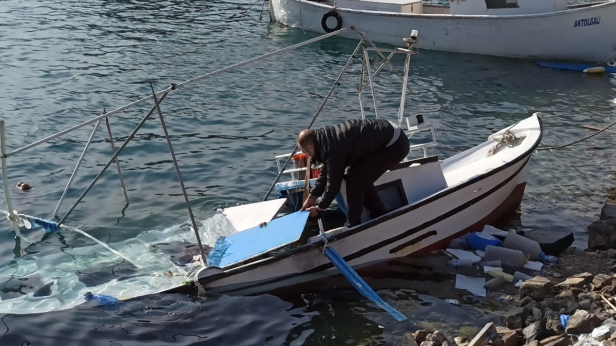 Denizdeki dalgalar nedeniyle balıkçı barınağında bulunan bazı tekneler alabora oldu.