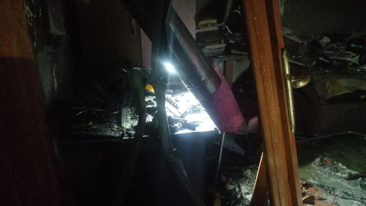 Yangında evin bir bölümü tamamen yanarak kullanılamaz hale geldi.