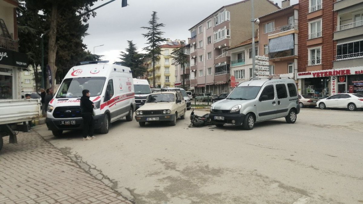 Isparta’nın Yalvaç ilçesi Pazaraşağı Mahallesi Turgut Özal Bulvarı Lokman Başaran Kavşağı’nda akşam saatlerinde meydana gelen kazada, Halil K. (43) idaresindeki hafif ticari araç ile Asuman M. (62) hakimiyetindeki motosiklet kavşakta çarpıştı.