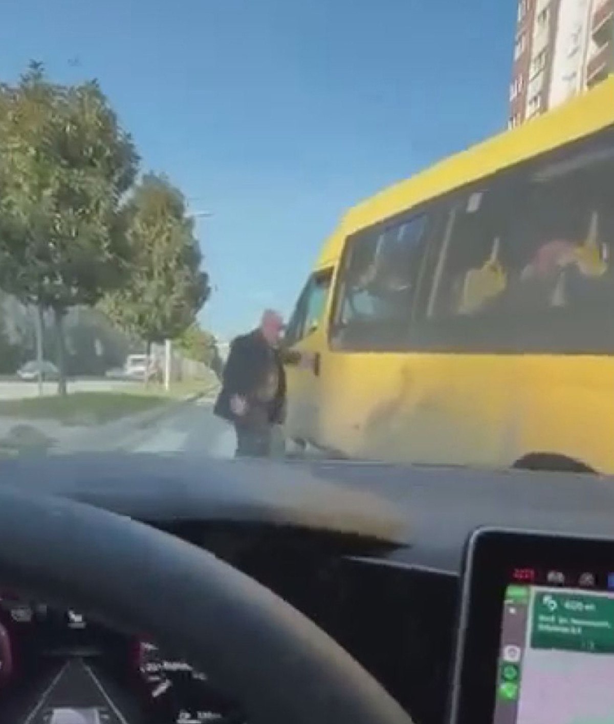 İstanbul’un Başakşehir ilçesi Kayaşehir Bulvarı üzerinde ciple, minibüs sürücüsü arasında tartışma çıktı.