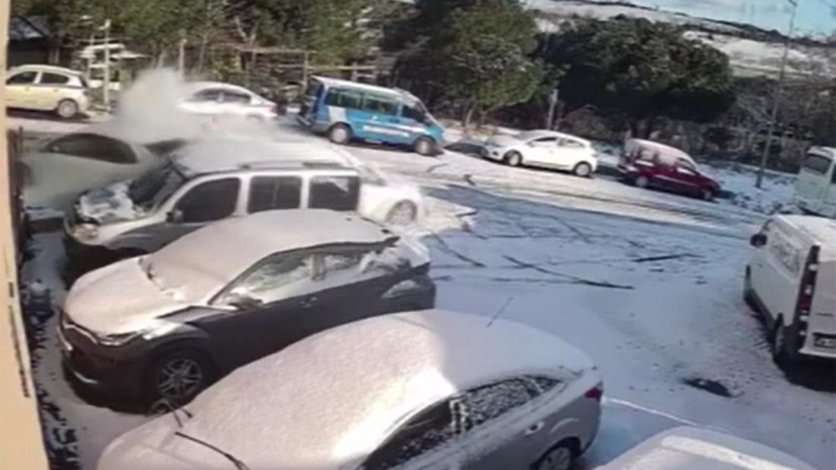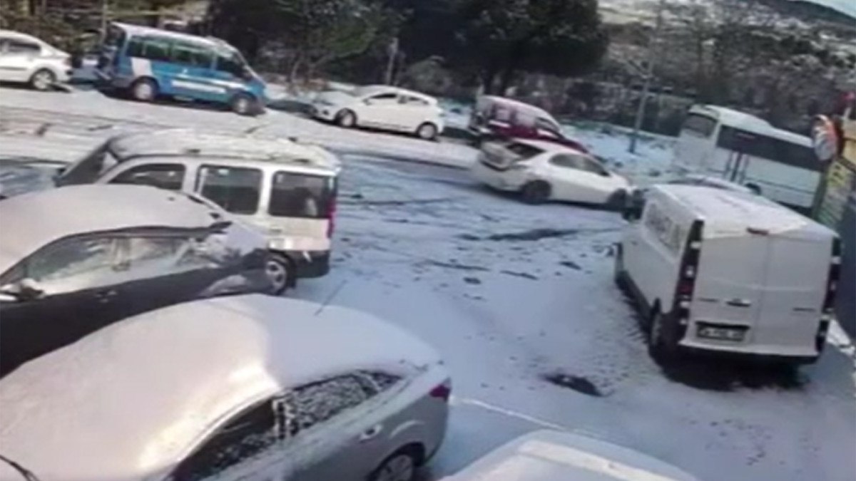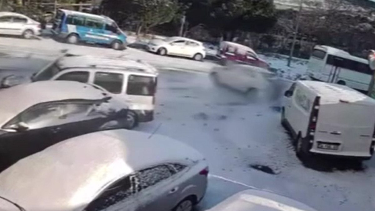 Yaralanan kimsenin olmadığı kazanın görüntülerinde aracın yokuş aşağı hızla kaydığı ve diğer otomobillere çarparak durabildiği görüldü.