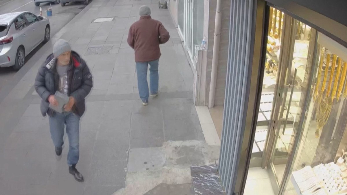 İş yerinin güvenlik kamera kayıtlarında şüphelinin kuyumcu dükkanı önünde bir süre bekleyerek etrafı gözetlediği, daha sonra eline aldığı kaldırım taşıyla iş yerine girdiği görülüyor.
