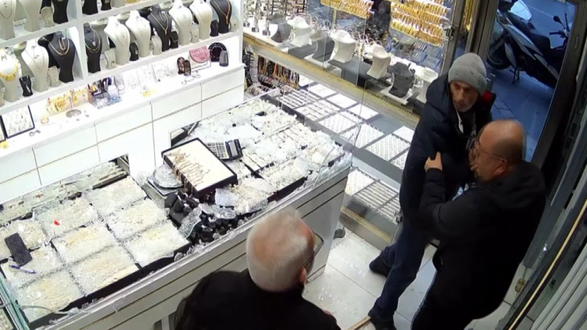İstanbul’un Fatih ilçesi Fevzipaşa Caddesi’ndeki bir kuyumcu dükkanına giren şüpheli, elindeki kaldırım taşıyla içinde çeşitli altınların bulunduğu camekan şeklindeki tezgahı kırdı.