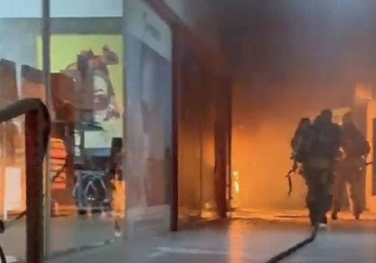 Alevlerin yükseldiği mağazadan çıkanların yaladığı panik anları cep telefonu kamerasıyla kaydedildi.
