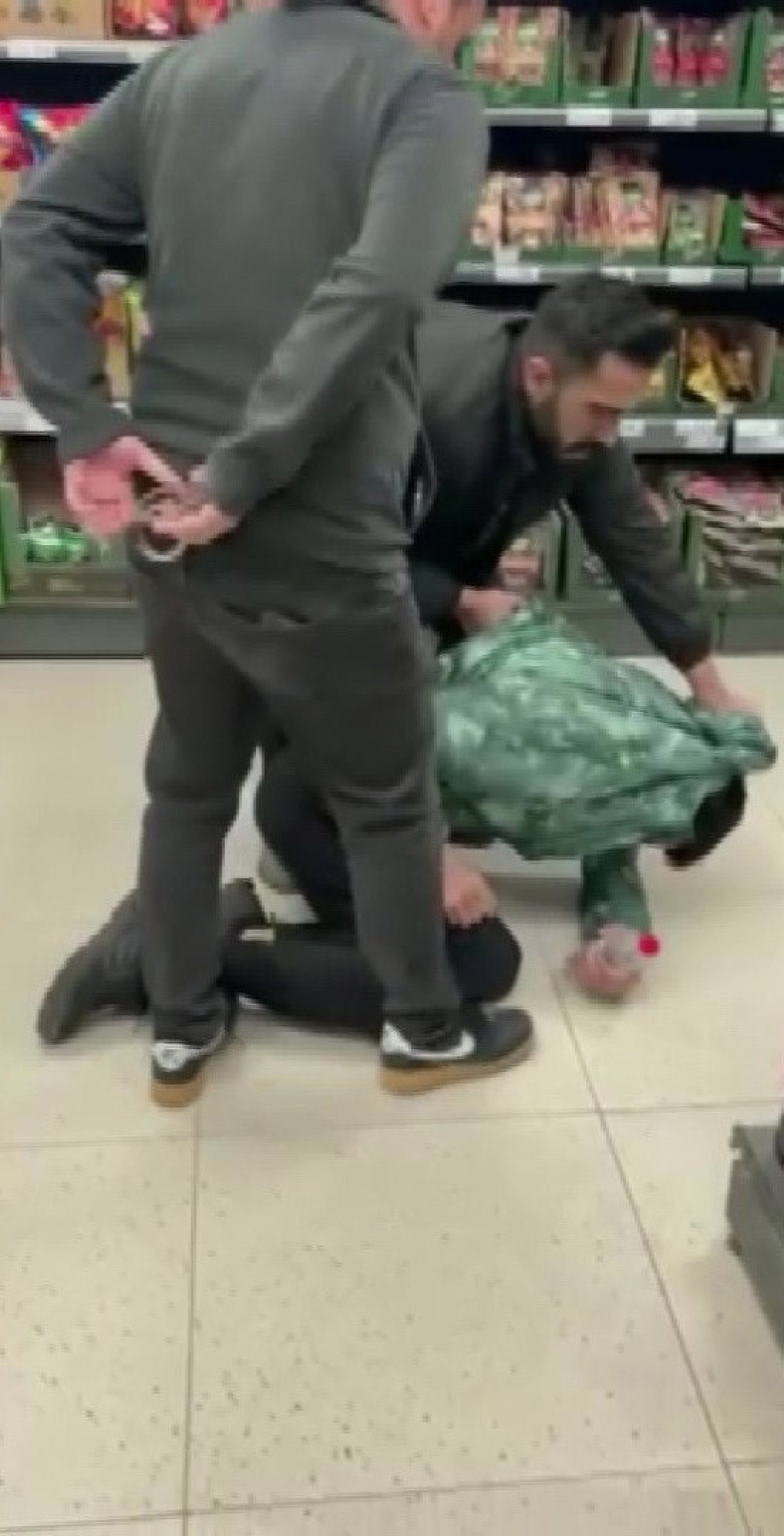 Şahıslardan birinin bir markette polis ekipleri tarafından kıskıvrak yakalandığı anlar ise kameraya yansıdı.