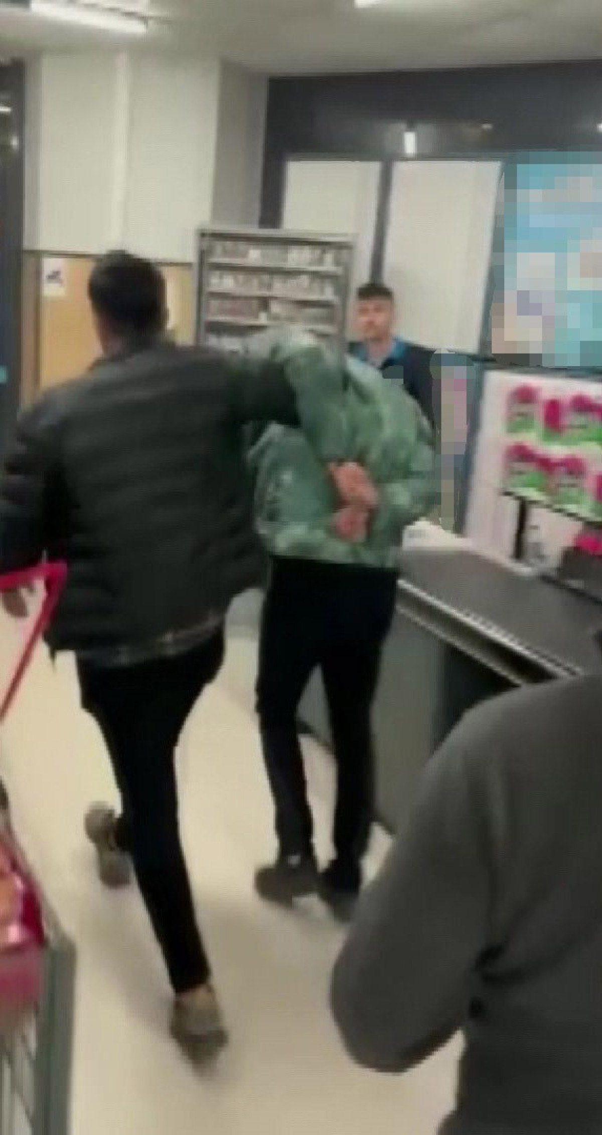 Şahıslardan birinin bir markette polis ekipleri tarafından kıskıvrak yakalandığı anlar ise kameraya yansıdı.
