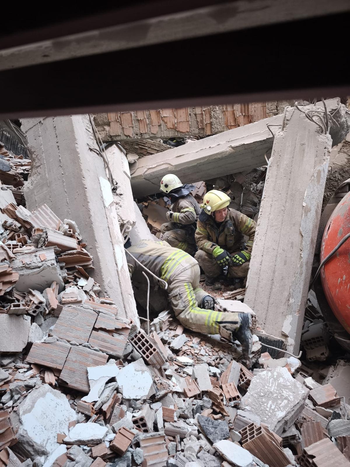 İhbar üzerine olay yerine çok sayıda itfaiye, sağlık ekibi ve polis ekibi sevk edildi. İtfaiye ve AFAD ekiplerinin çalışmalarına arama kurtarma köpekleri de destek veriyor.