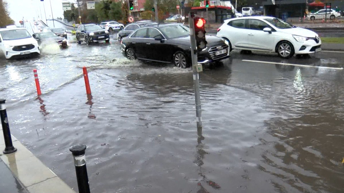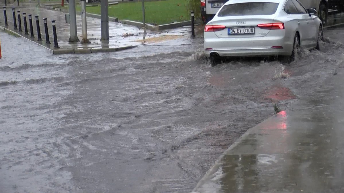 Şiddetli yağmur nedeniyle Bakırköy Aksu Caddesinin bir kısmı yağmur suları ile doldu.
