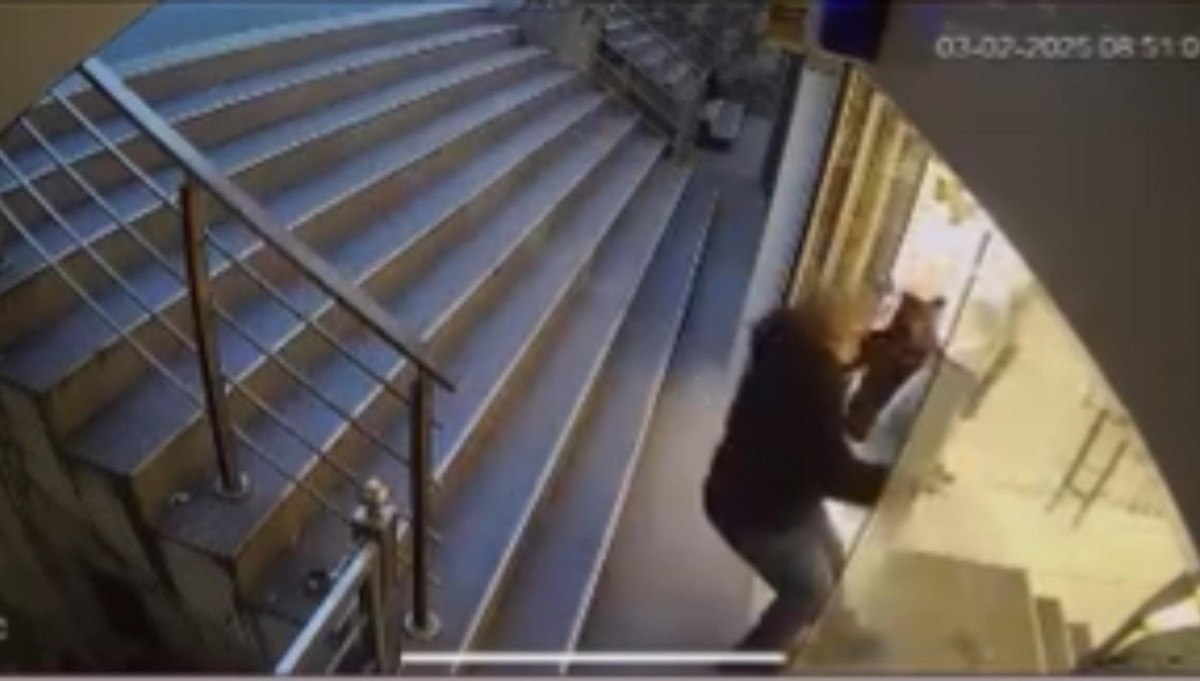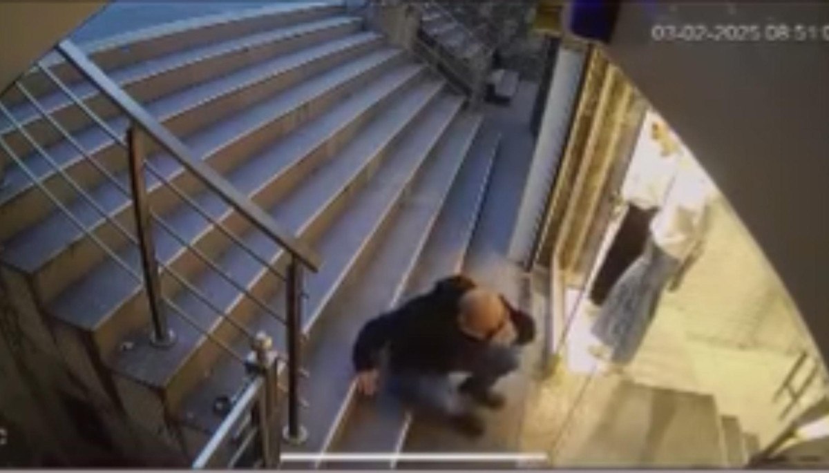Merdivenlerden inerek dışarı çıkmak isteyen bir kişi cam kapıyı fark etmedi. Giyim dükkanının cam kapısına çarparak yere savruldu.