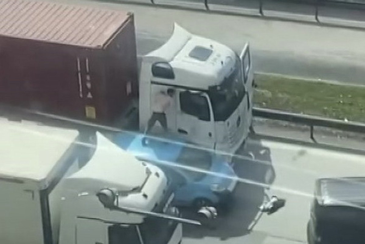 İstanbul Başakşehir’de seyir halindeki tır şoförüyle hafif ticari araç sürücüsü arasında çıkan yol verme tartışmasını büyüyerek kavgaya dönüştü.