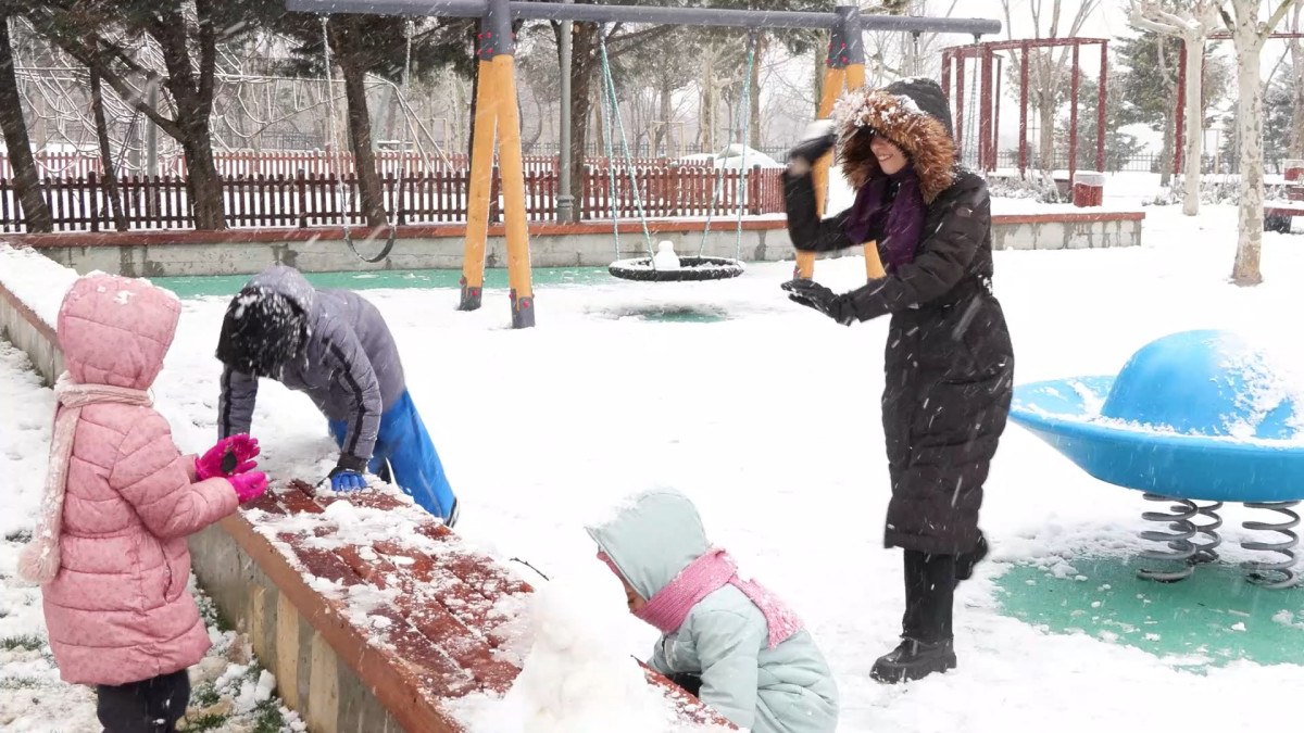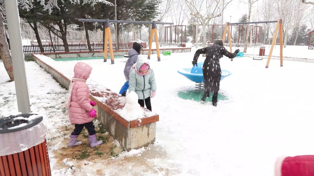 Beykoz’da okulların tatil olmasını fırsat bilen çocuklar, aileleriyle parklara giderek kartopu oynadı.