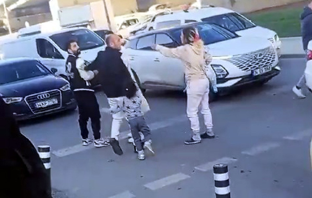 Görüntülerde, çocuklardan birisinin babasının bacağına sarılarak onu engellemeye çalışıp ağladığı anlar yer aldı. Kadın ve çocukların kavgayı ayırmaya çalıştığı görüldü.