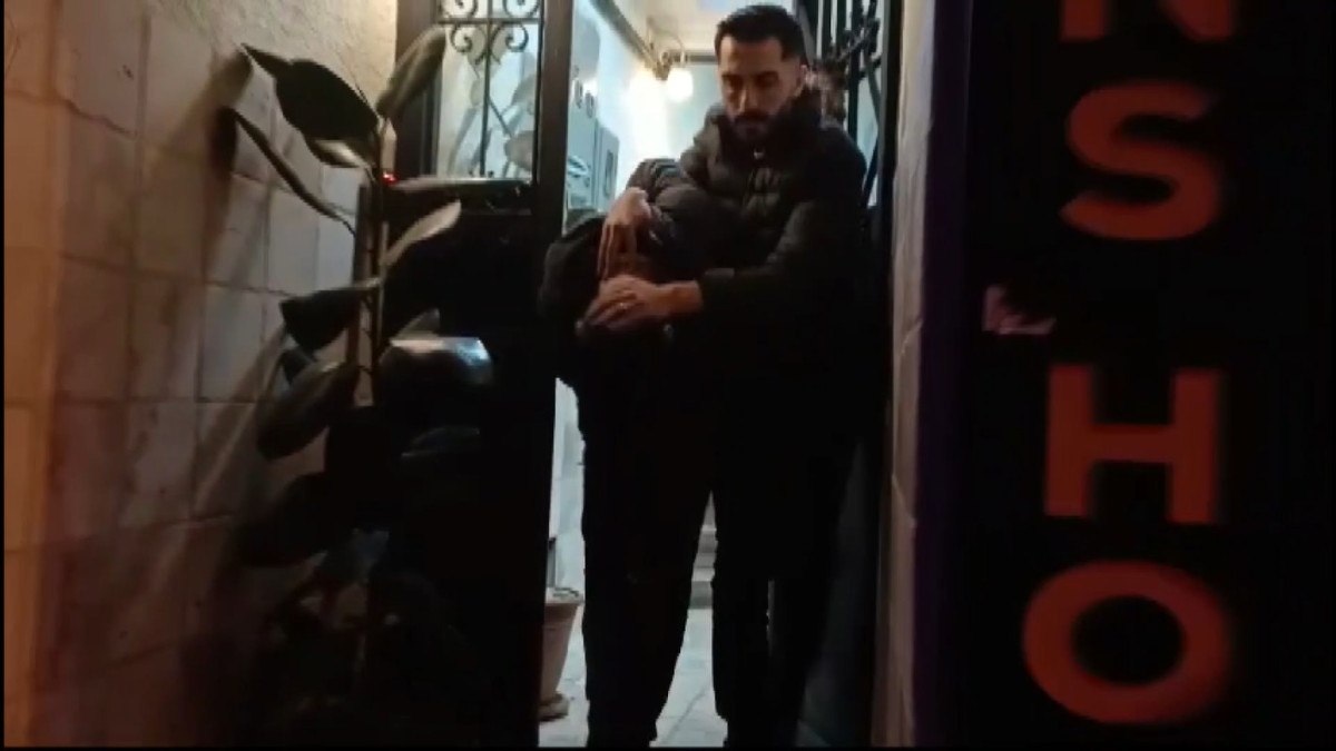 Şüphelinin saklandığı tavan arasından çıkarılarak aşağı indirildiği anları, polis kamerası görüntüledi.