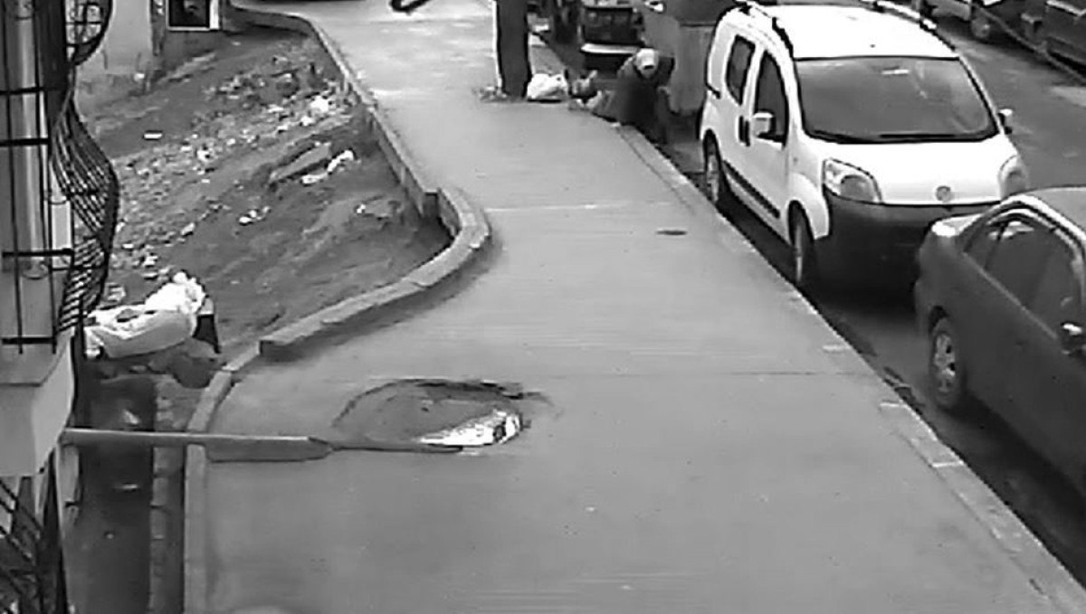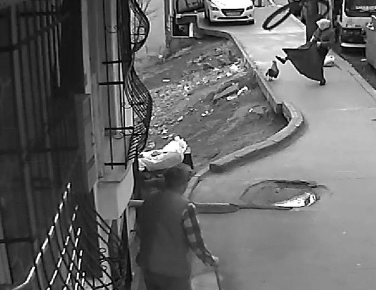 Neye uğradığını şaşıran kadın, aldığı darbelerin de etkisiyle defalarca yere düştü.