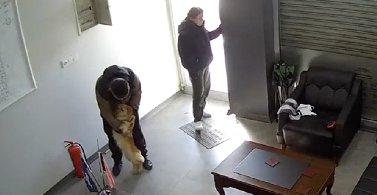 İş yeri sahibi, köpeğin tasmasının bağlı olduğunu düşünerek sokağa açılan kapıyı araladı.