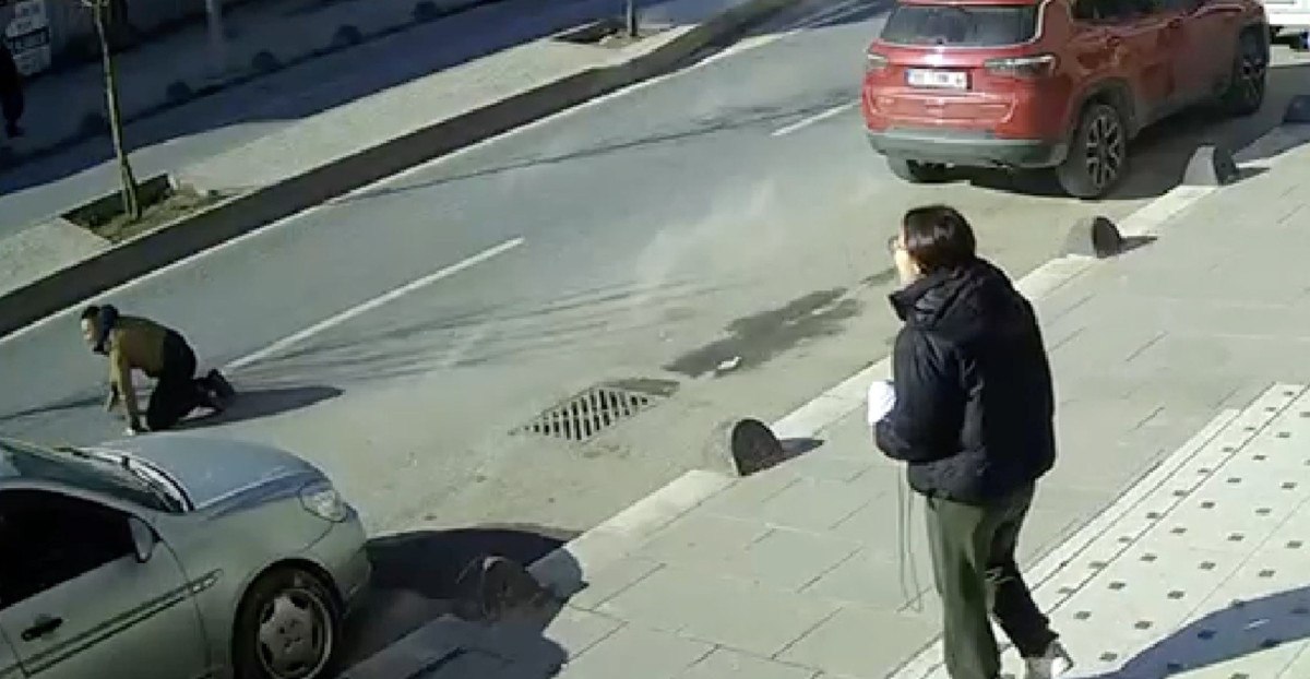Vatandaş, o sırada cadde üzerinde ilerleyen bir aracın altında kalmaktan da son anda kurtuldu.