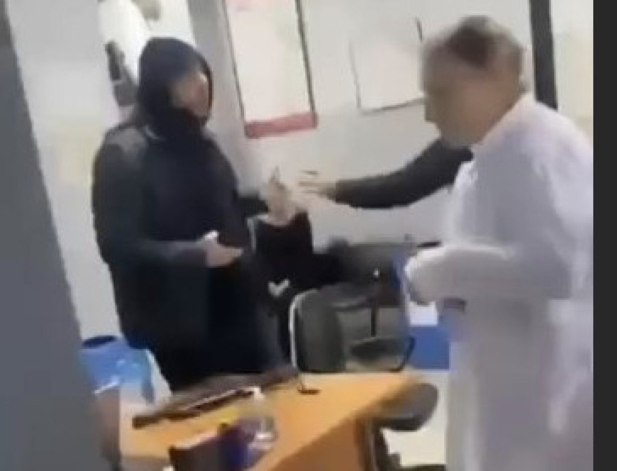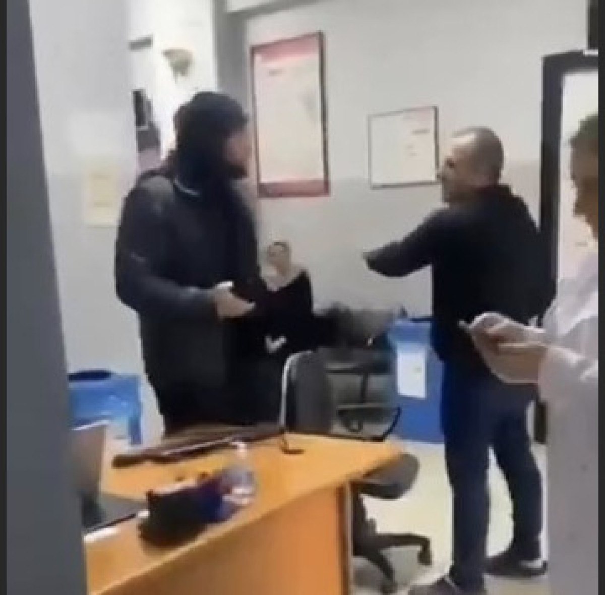 Saldırganın masa üzerindeki bilgisayarlara da zarar verdiği anlar başka hastalar tarafından cep telefonu kamerası ile anbean kayda alındı.
