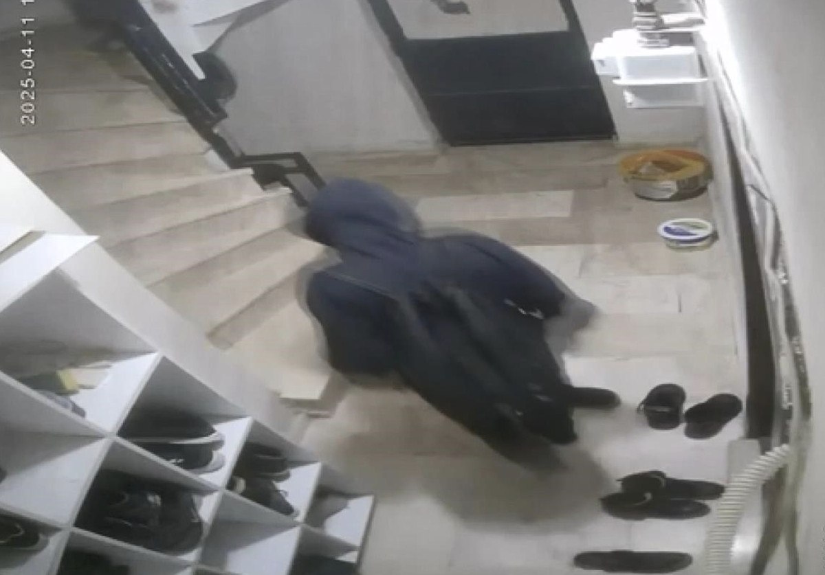 Binanın güvenlik kamerasına yansıyan görüntülerde polis ekiplerine ihbar edildikten sonra şüpheli Hasan E.’nin evden çıktığı anlar görülüyor.