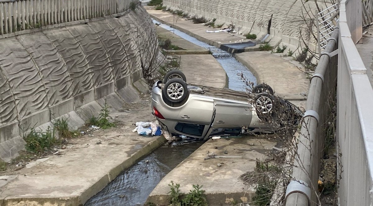 İstanbul Pendik’te bir otomobil, hızlı şekilde giderken sürücüsünün virajı alamaması sonucu dereye uçtu.