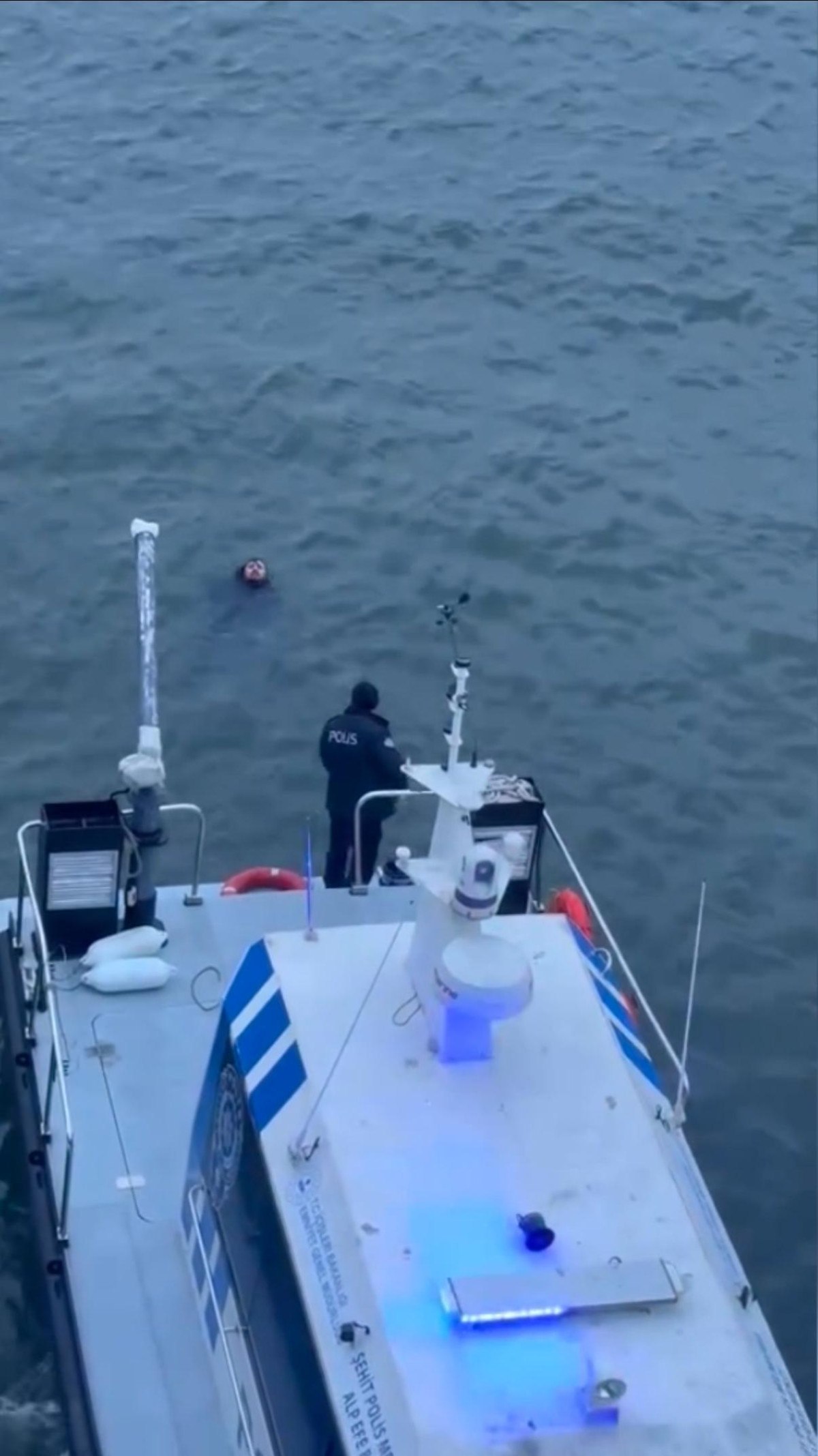 Tekneyle denize düşen adamın yanına giden polis ekipleri adamı kurtardı.