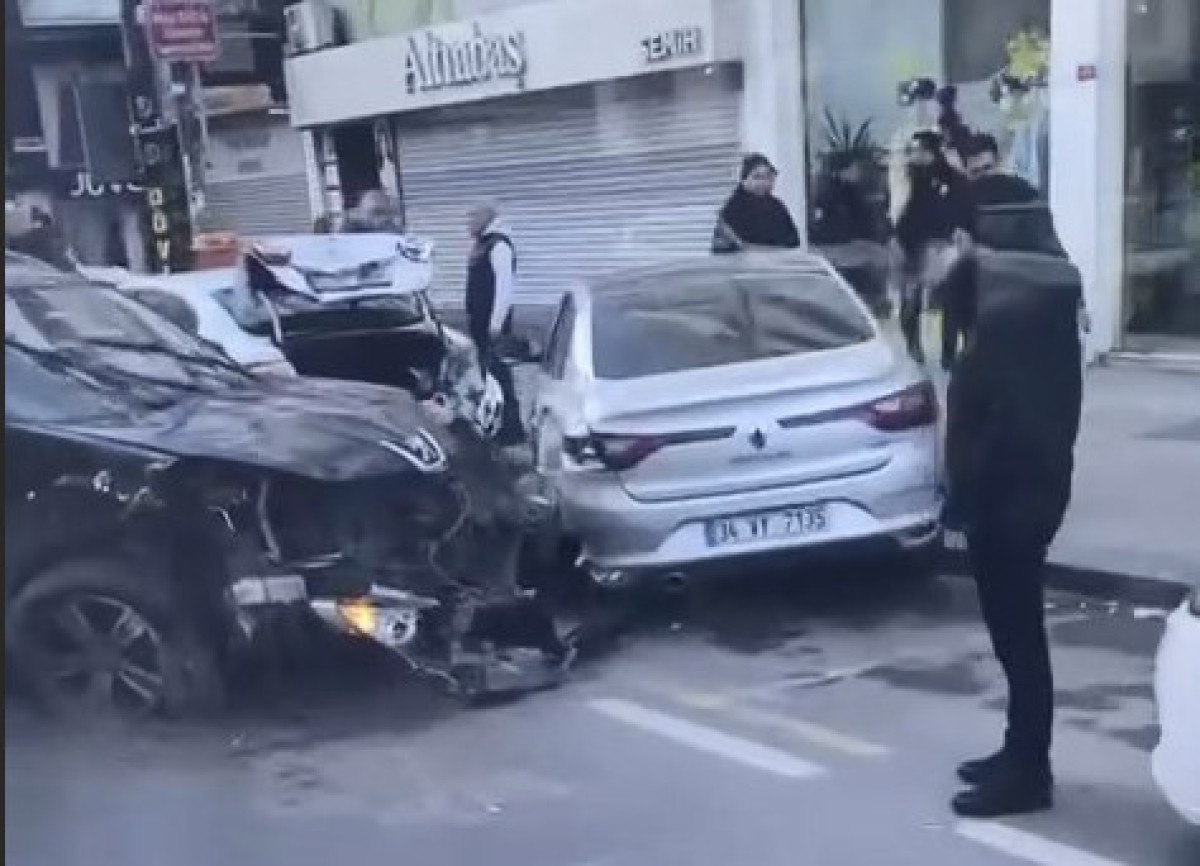 Çarpmanın etkisiyle savrulan otomobil diğer araçların da birbirine vurmasına neden oldu.