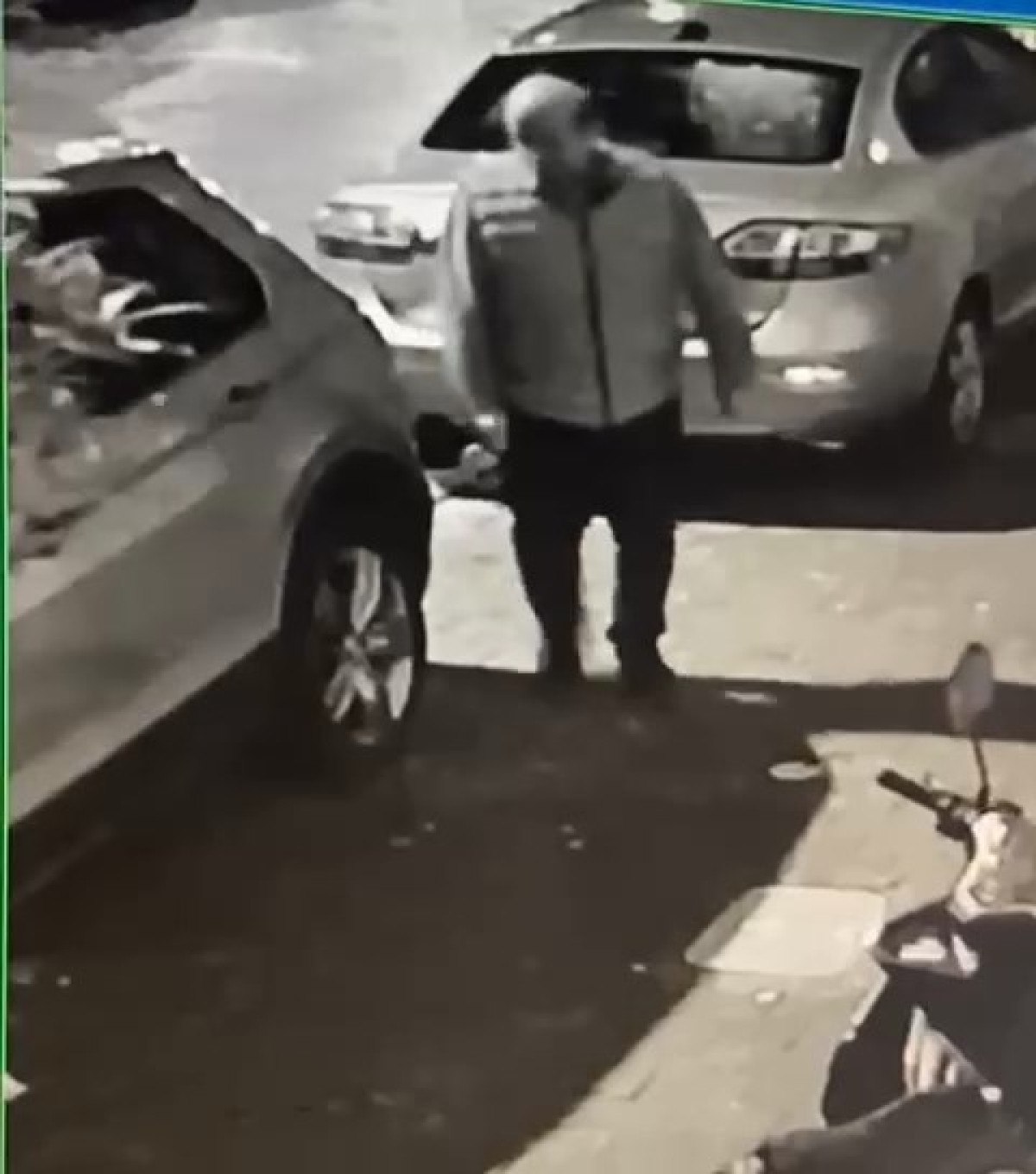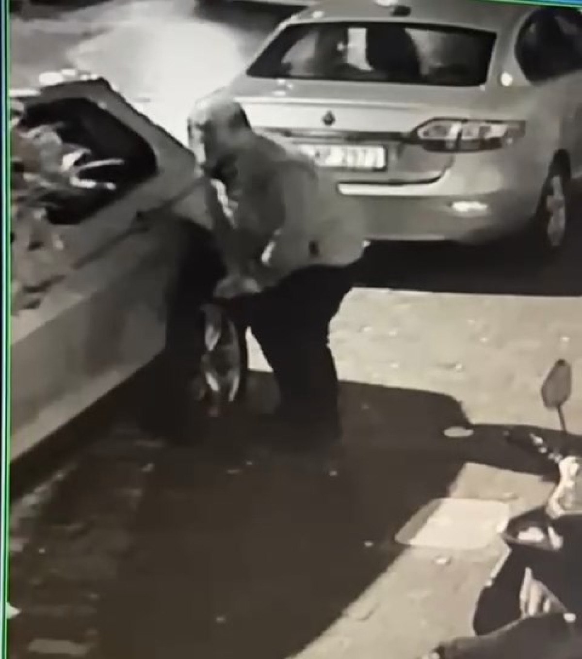 Şüphelinin otomobilin lastiğini patlattığı anlar, bir binanın güvenlik kamerasına yansıdı.