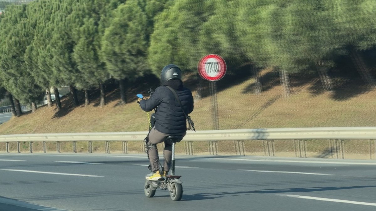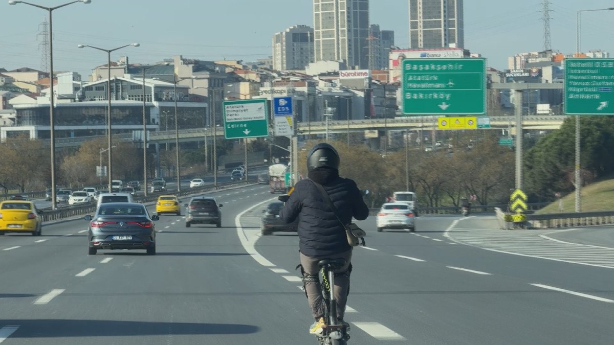 TEM Otoyolu’nun Bağcılar mevkiinde trafiğe çıkan bir elektrikli scooter sürücüsü paniğe neden oldu.
