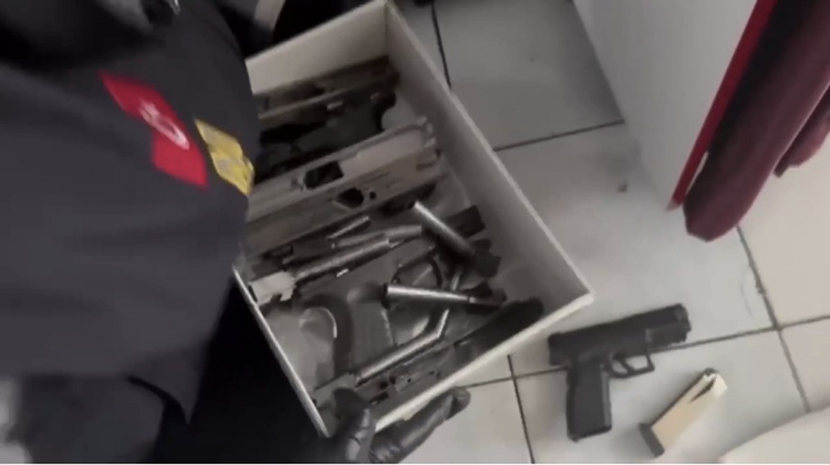Adreslerde yapılan aramalarda; 6 ruhsatsız tabanca, 2 tabanca, pompalı tüfek şarjörü, 32 pompalı tüfek kartuşu, 31 fişek ve silah üretiminde kullanılan çok sayıda malzeme ele geçirildi.