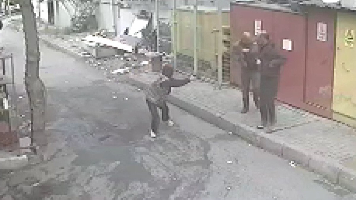 Şüphelinin sokaktan geçtikten bir süre sonra geri döndüğü ve silahla ateş açtığı anlar yer alırken, bu sırada saldırıya uğrayan kişilerin ise şüphelinin peşinden koştukları görüldü. Şüphelinin darbedilme anı ise çevredeki vatandaşlar tarafından cep telefonu ile kaydedildi.