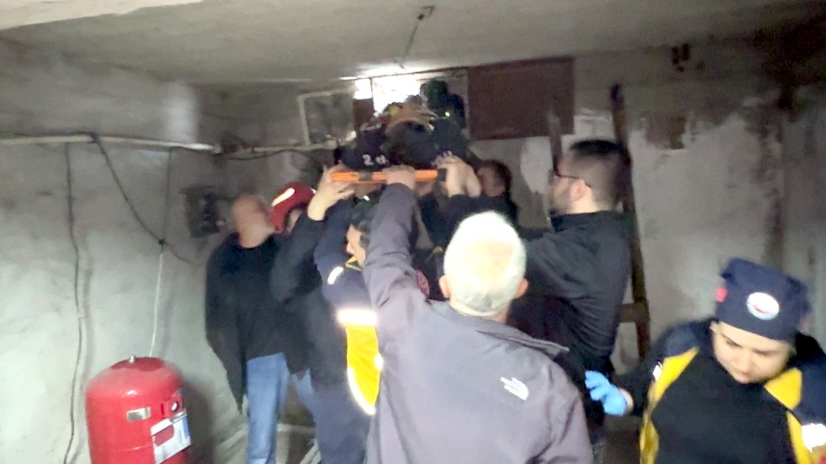 İtfaiye merdivenine bağlanan yaralı, gerekli önlemler alındıktan sonra pencereden dışarı çıkartılarak sağlık görevlilerine teslim edildi.