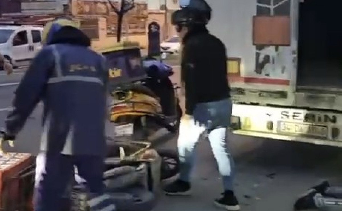 Tır şoförü, Sönmemiş’i fark etmeyerek manevrasına devam ederek motosiklete çarptı.