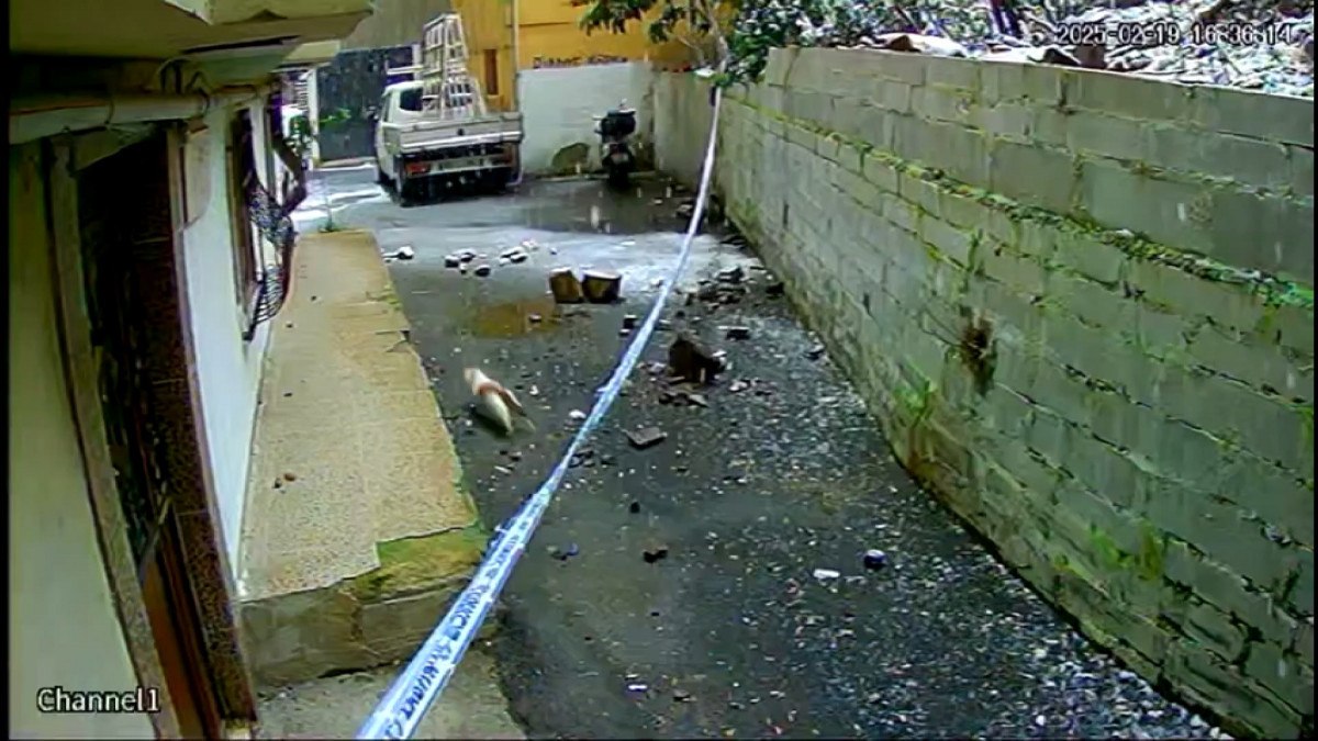 Kayaların düştüğü anlar, binanın güvenlik kamerası tarafından kaydedildi.