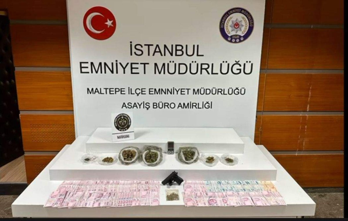Aramada 810 gram marihuana isimli uyuşturucu madde, 1 hassas terazi, 1 ruhsatsız tabanca ve buna ait 22 mermi ile 62 bin 100 lira nakit para ele geçirildi.