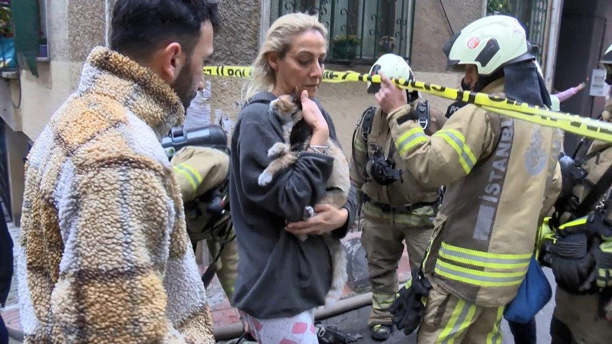 İtfaiye ekipleri evde yaşayan 3 kişi ve 1 kediyi kurtardı. Dumandan etkilenen kediye sağlık ekibi ve itfaiye erleri müdahale etti.