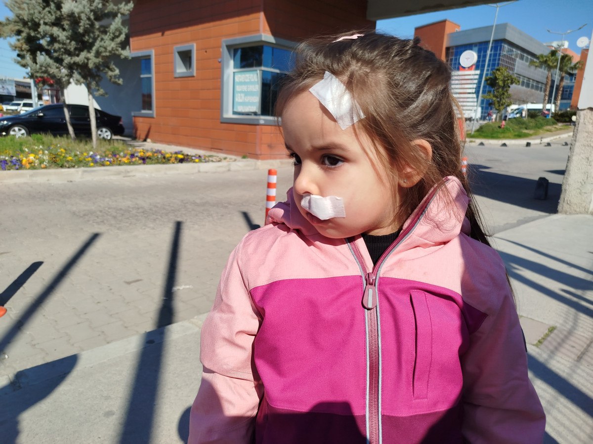 Bir anda çocuğa saldıran köpek, Elif’in yüzüne hamle yaparak dudak kısmını ısırdı, patisiyle alnını çizdi.
