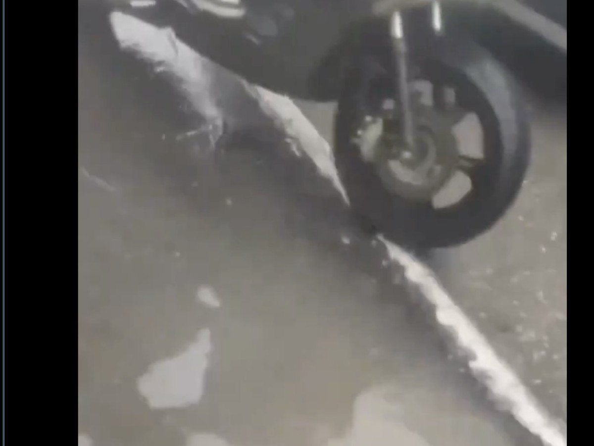 Kazada motokurye yerden kalkamazken, yağmur suyu dolu çukur ise tepki çekti.