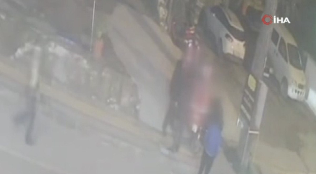 Ne olduğunu anlamayan moto kurye saldırgana karşılık vermezken, meydana gelen olay çevredeki bir iş yerinin güvenlik kamerasına yansıdı.