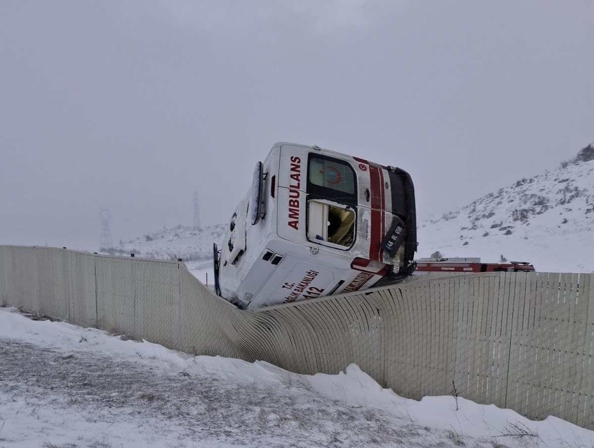 Kahramanmaraş’ın Elbistan-Nurhak karayolu üzerinde meydana gelen kazada, ambulans seyir halindeyken, karlı yolda sürücüsünün direksiyon hakimiyetini kaybetmesi sonucu yoldan çıktı.