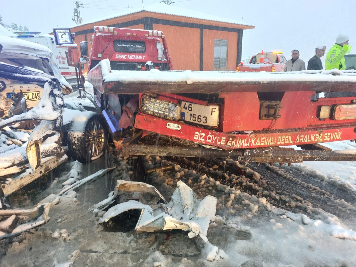 Bugün akşam saatlerinde, Kahramanmaraş Edebiyat Yolu Bahaettin Karakoç Tüneli girişinde, Ahmet Hakan Akkoyun’un kullandığı 46 ADL 049 plakalı otomobil, kar nedeniyle kayganlaşan yolda kontrolünü kaybederek, H.B.’nin yönetimindeki 46 F 1563 plakalı çekiciye arkadan çarptı.