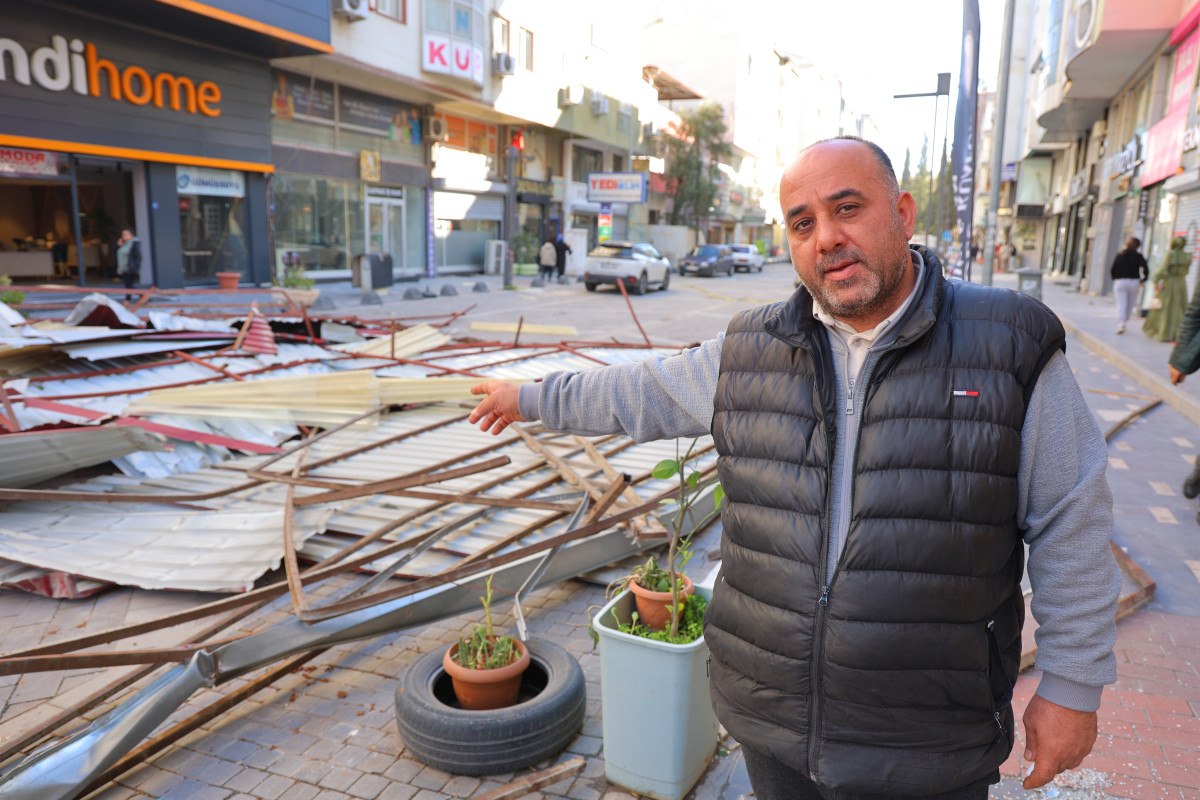 Olayı gören Ökkeş Kaya ise, “Dün büyük bir gürültü ile çatı uçtu hala burada duruyor. Çatının bir an önce kaldırılmasını istiyoruz” dedi.