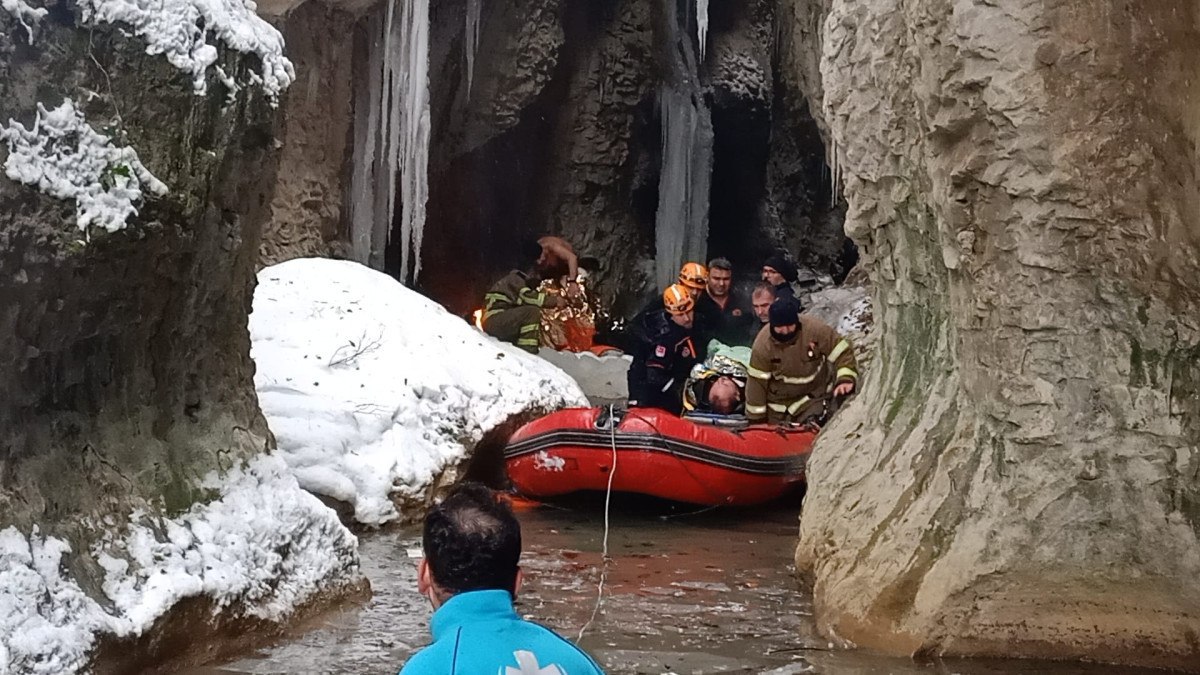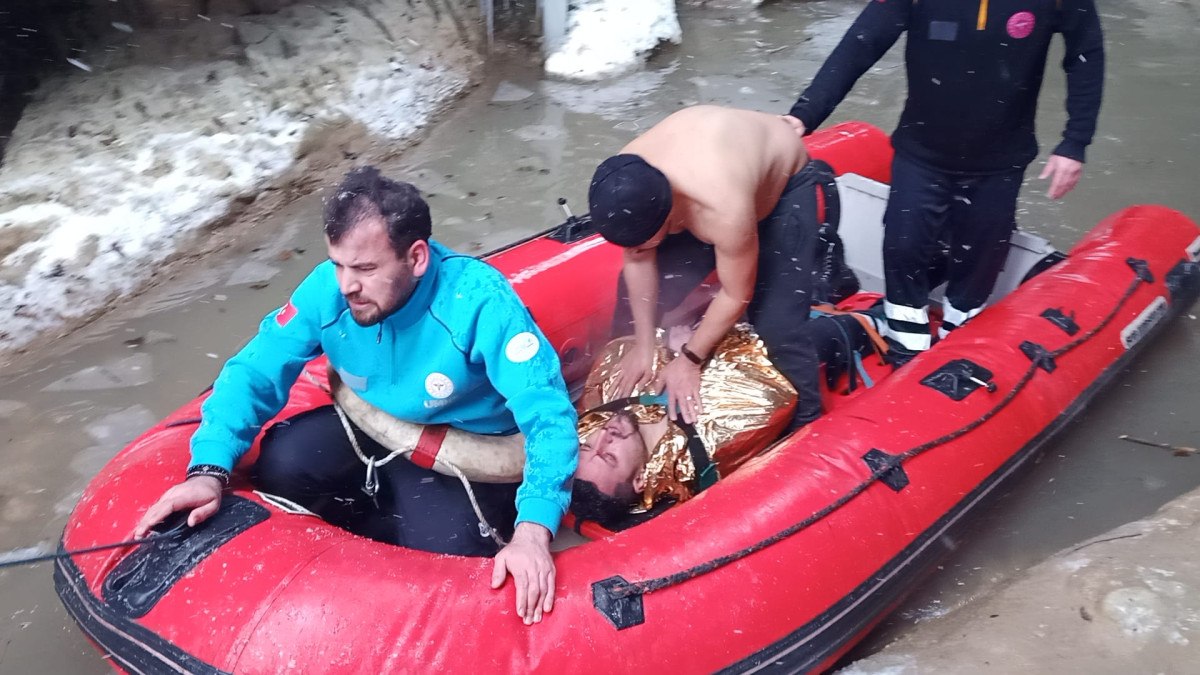 Karla kaplı ve bazı bölümlerde yüzeyi buz tutan suyun olduğu kanyona düşen otomobildeki Ekrem Şahin, İsa Atay ile İlhan Kayaoğlu’nu kurtarmak için çalışma başlatıldı.
