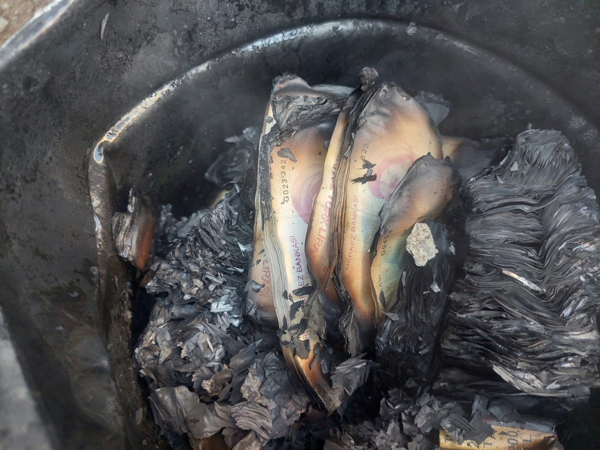 Ün, hafif zararın oluştuğu iş yerinde kovada sakladığı 1 milyon TL’nin de yandığını bildirdi.