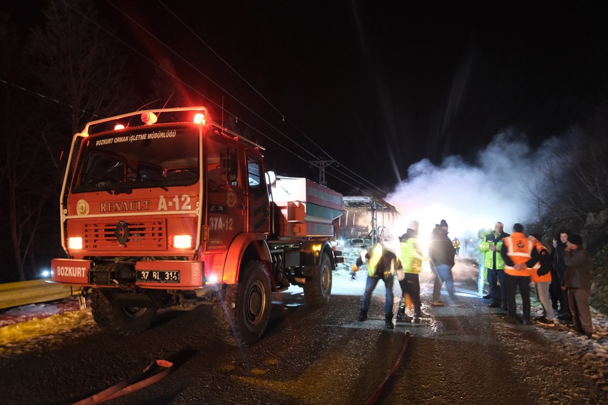 Saat 18.00’de Bozkurt ilçe terminalinden hareket eden otobüs, seyir halindeyken bir anda alev almaya başladı. Yangını fark eden şoför, hızla aracı yol kenarında durdurarak yolcuları tahliye etti ve durumu 112 Acil Çağrı Merkezi’ne bildirdi. İhbar üzerine bölgeye çok sayıda itfaiye, polis ve sağlık ekibi sevk edildi.
