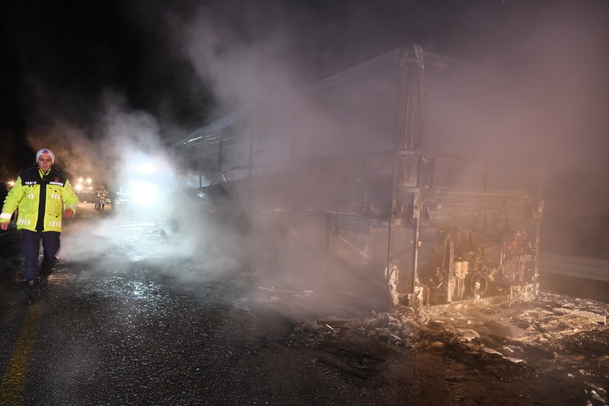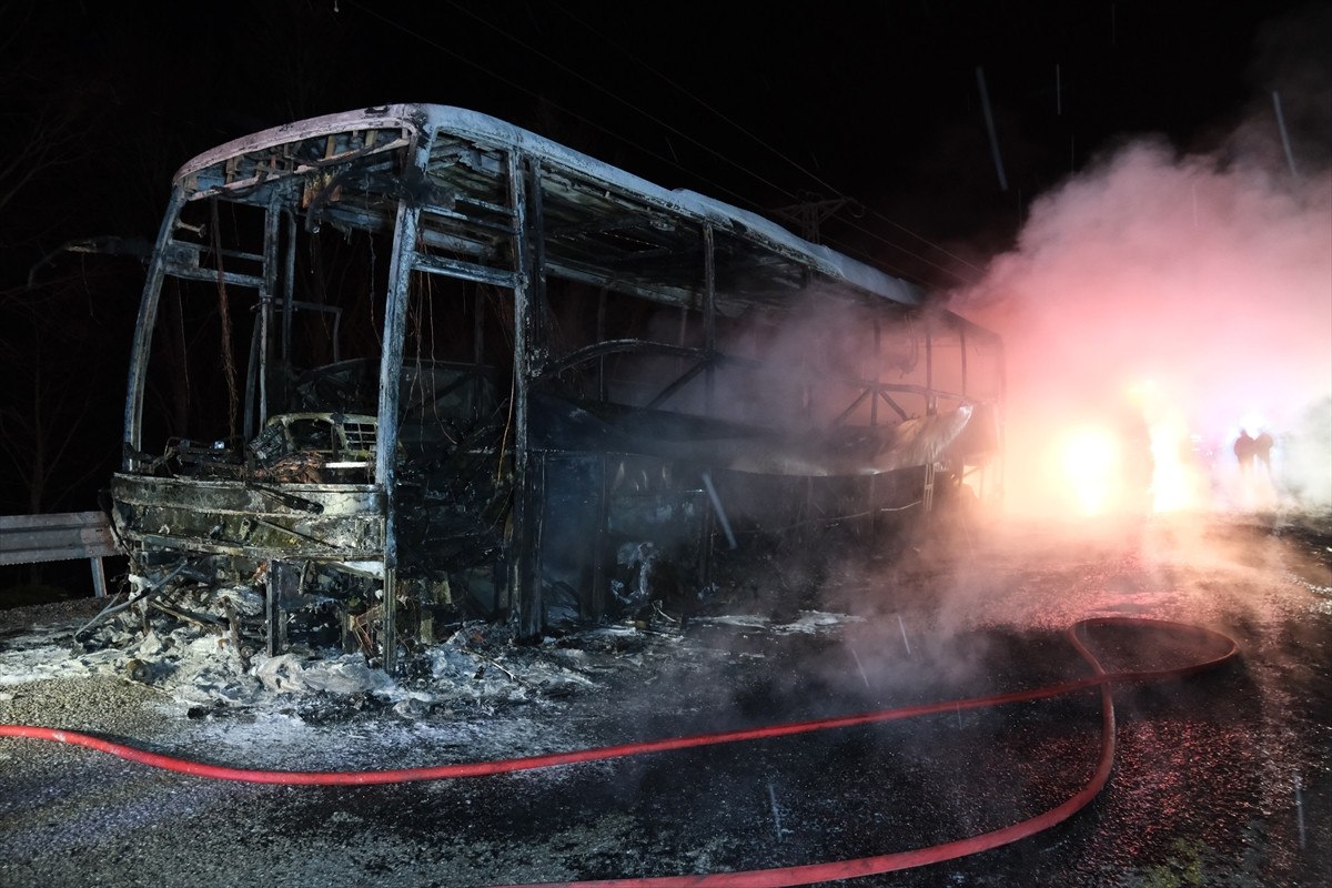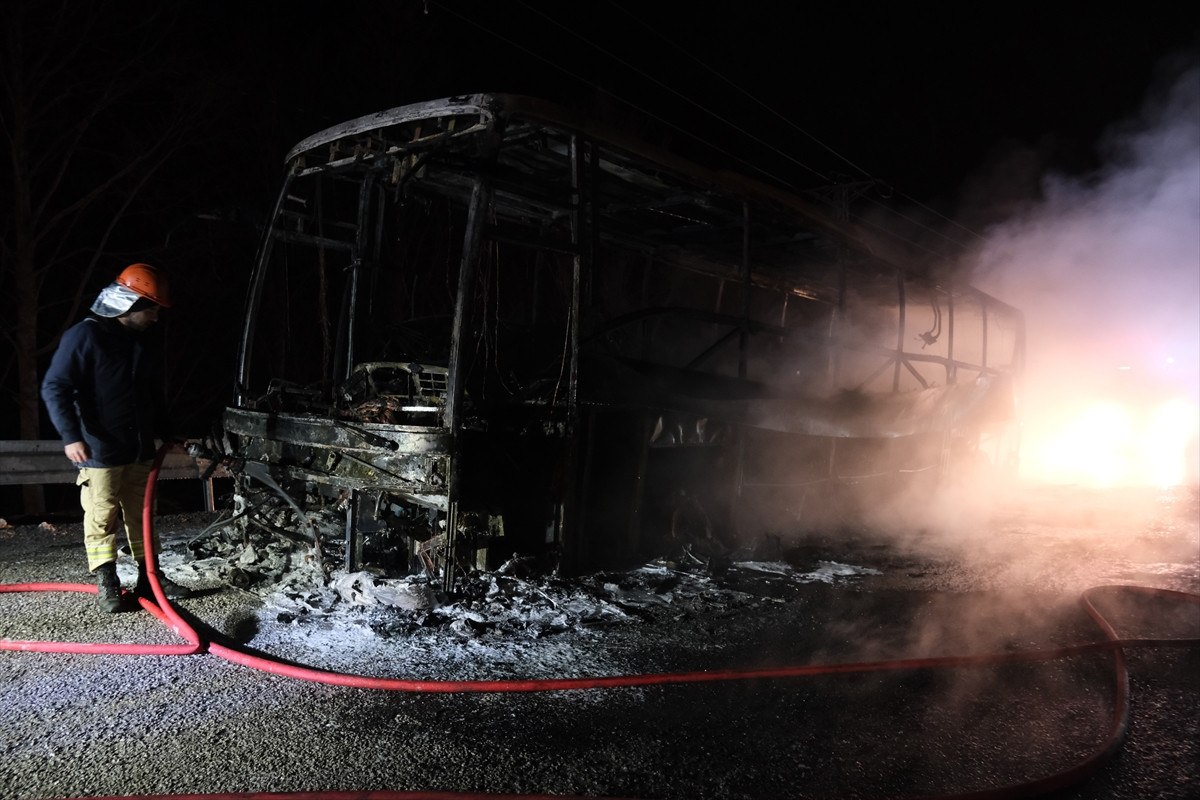 İtfaiye ekiplerinin müdahalesiyle yangın kontrol altına alınırken, otobüs tamamen yanarak demir yığınına döndü. Olay yerindeki çalışmaların ardından enkaz, iş makineleri yardımıyla kaldırıldı.