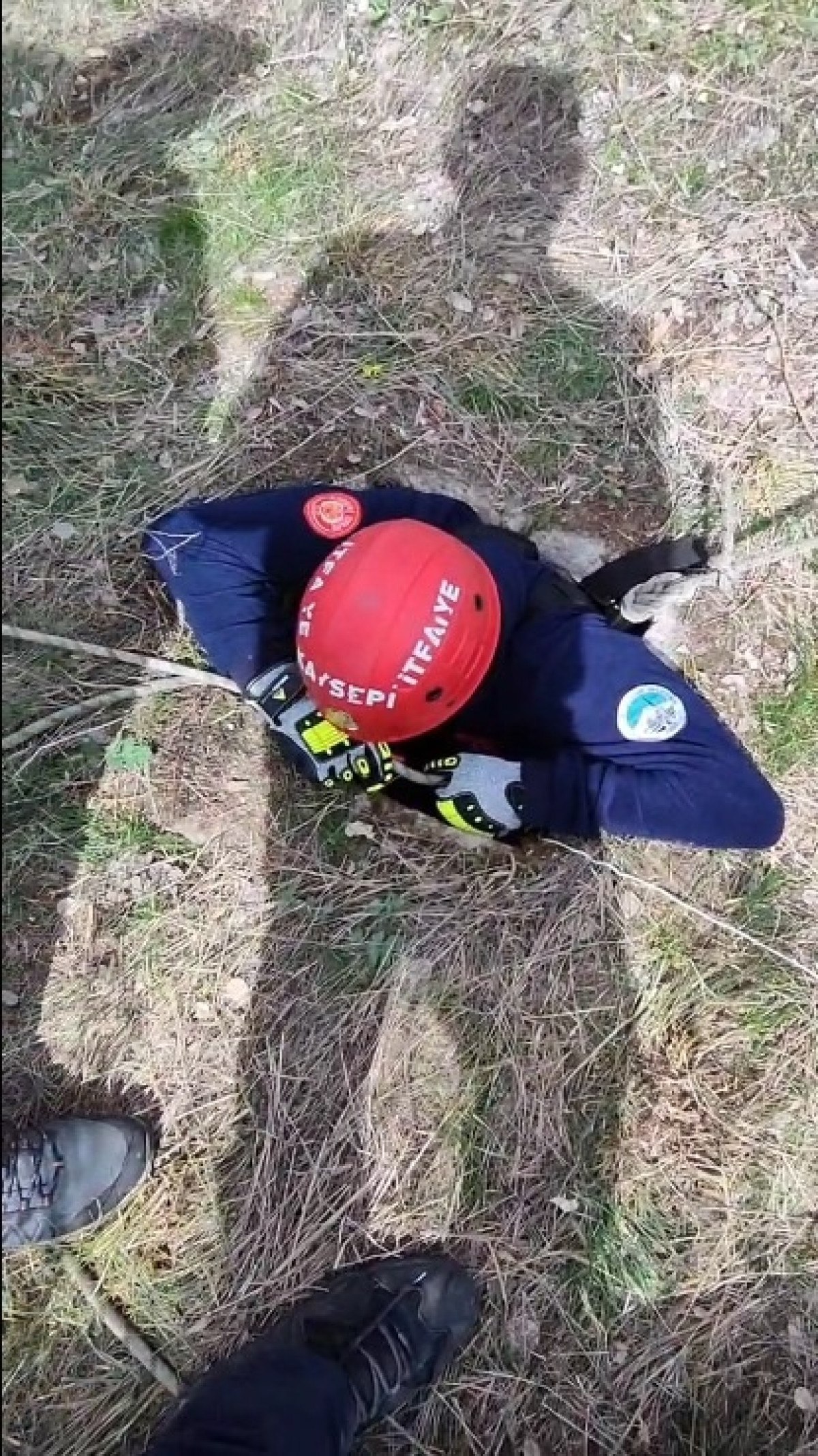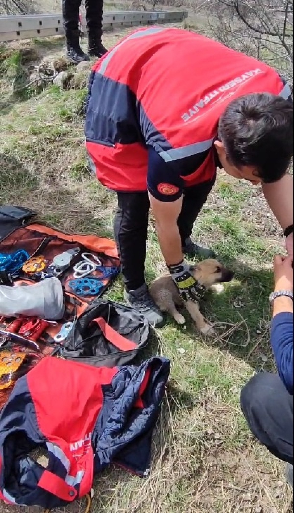 Kayseri’de kuyuya düşen yavru köpek kurtarıldı