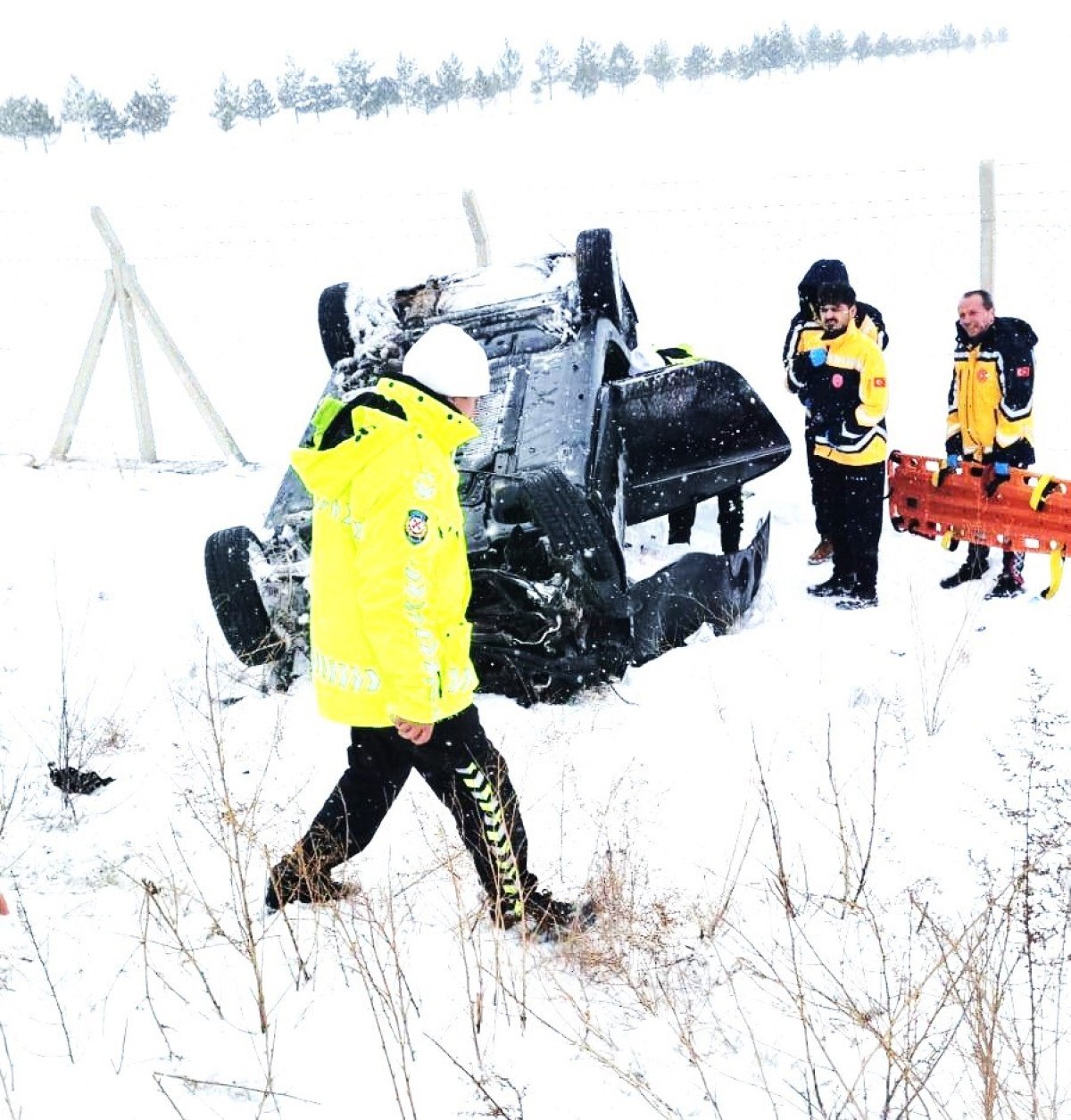Kayseri-Malatya kara yolunda seyreden polis aracı, Akmescit mevkiinde bir otomobil ile çarpıştı.